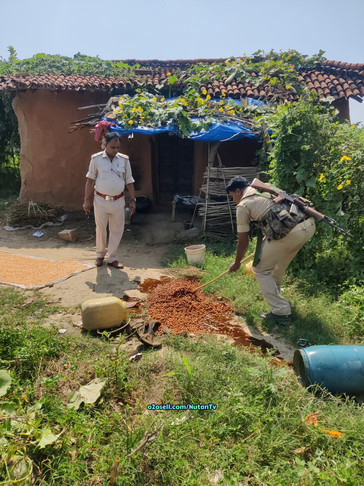 भवनाथपुर के वनसनी गांव में आधा दर्जन लोगों के घर छापेमारी कर शराब बनाने का उपकरण को पुलिस ने किया नष्ट