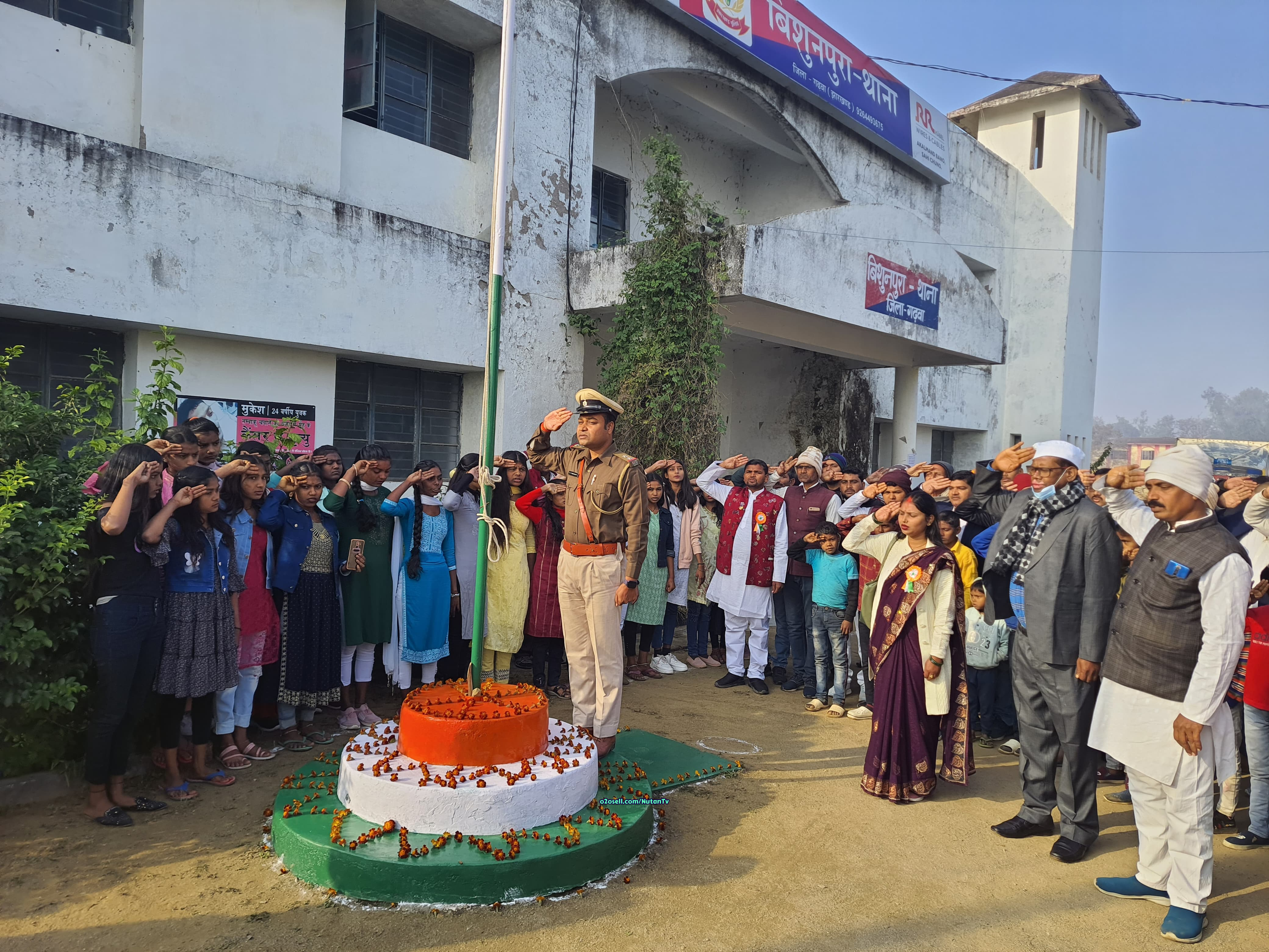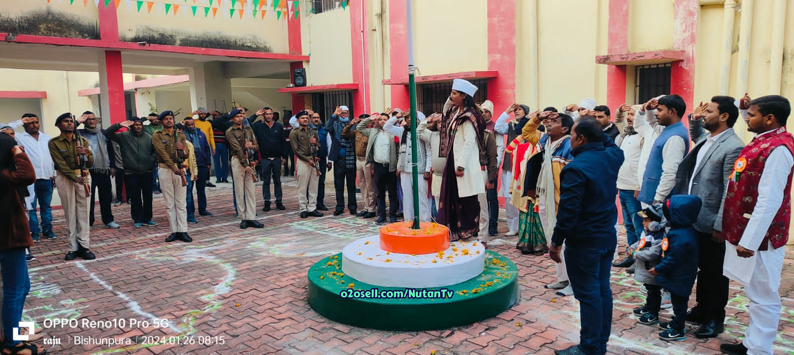 बिशुनपुरा : 75 वे गणतंत्र दिवस के अवसर पर प्रखंड के सभी सरकारी व गैर सरकारी संस्थानों में सान से तिरंगा फहराया गया। सबसे पहले प्रखंड कार्यालय पर प्रमुख दीपा कुमारी के द्वारा झंडोतोलन किया गया। वही थाना परिसर में थाना प्रभारी संजय कुमार कुशवाहा ने झंडोतोलन किया।उसके बाद राजराजेंद्र प्रताप देव उच्य विद्यालय में प्रधानाध्यापक नागेंद्र पांडेय, बाल विकास विद्यालय में भोलानाथ साहू, विशुनपुरा पँचायत भवन पर मुखिया प्रमिला देवी, अमहरखास पँचायत भवन पर मुखिया ललित नारायण सिंह, सरांग पँचायत भवन पर मुखिया व्यूटी सिंह, पिपरिकला पँचायत भवन पर मुखिया सुसील देवी, पतिहारी पँचायत भवन पर मुखिया रब्या फिरदोसी, राजकीय मध्य विद्यालय विशुनपुरा में प्रधानाध्यापक अजित पांडेय, पिपरी प्लस टू विद्यालय में प्रधानाध्यापक शशि प्रकाश रमन, पतिहारी विद्यालय में प्रधानाध्यापक उपेंद्र गुप्ता, वही भारत माता सेवा समिति विशुनपुरा के द्वारा लामी पहाड़ी पर झंडोतोलन किया गया।