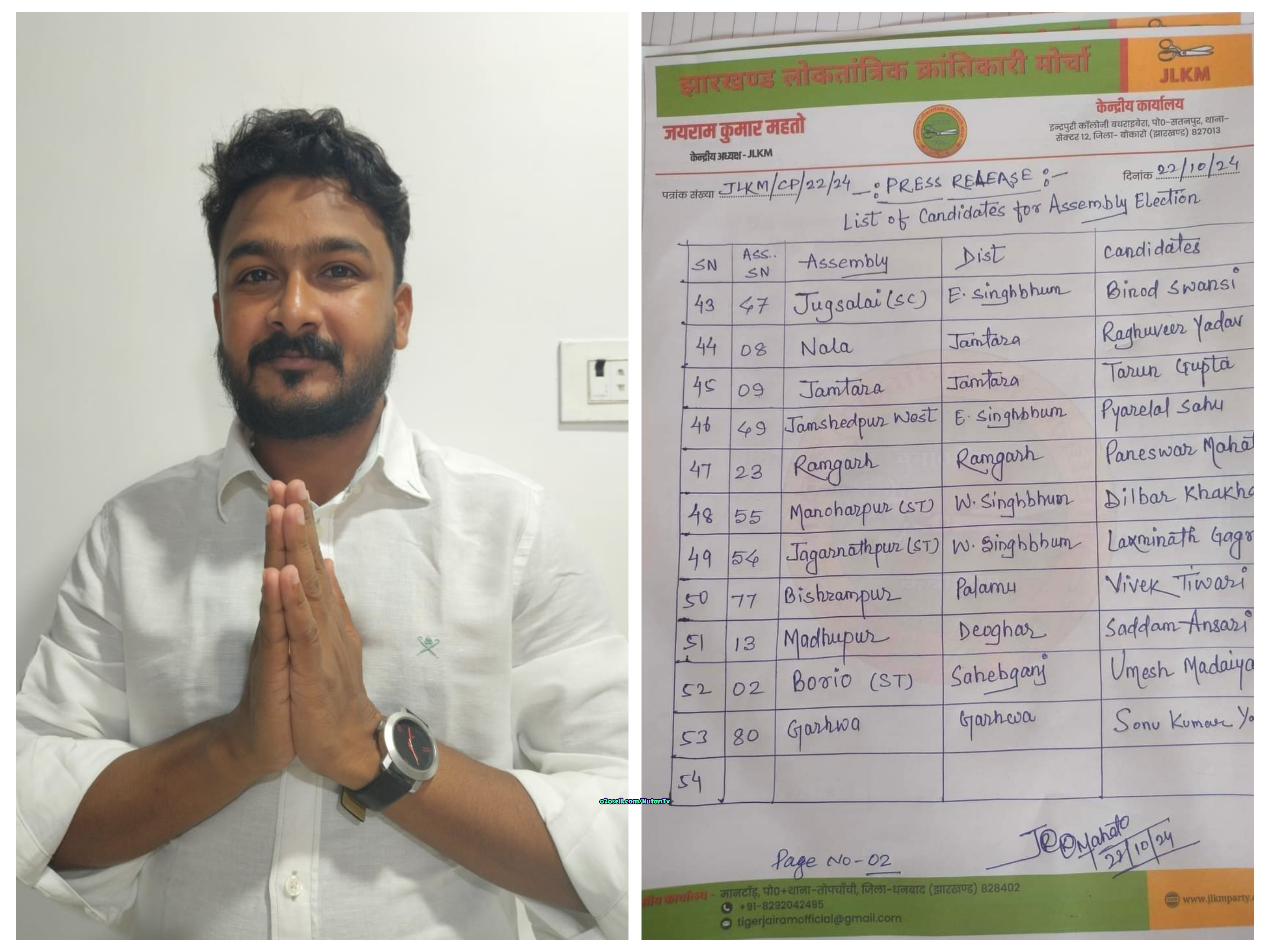 सोनू कुमार यादव ने पार्टी सुप्रीमो जयराम महतो का आभार व्यक्त किया और बताया कि वे 24 अक्टूबर को अपना नामांकन दाखिल करेंगे। उन्होंने विधानसभा क्षेत्र के सभी मतदाताओं और समर्थकों से अधिक से अधिक संख्या में नामांकन में शामिल होने का आग्रह किया है।