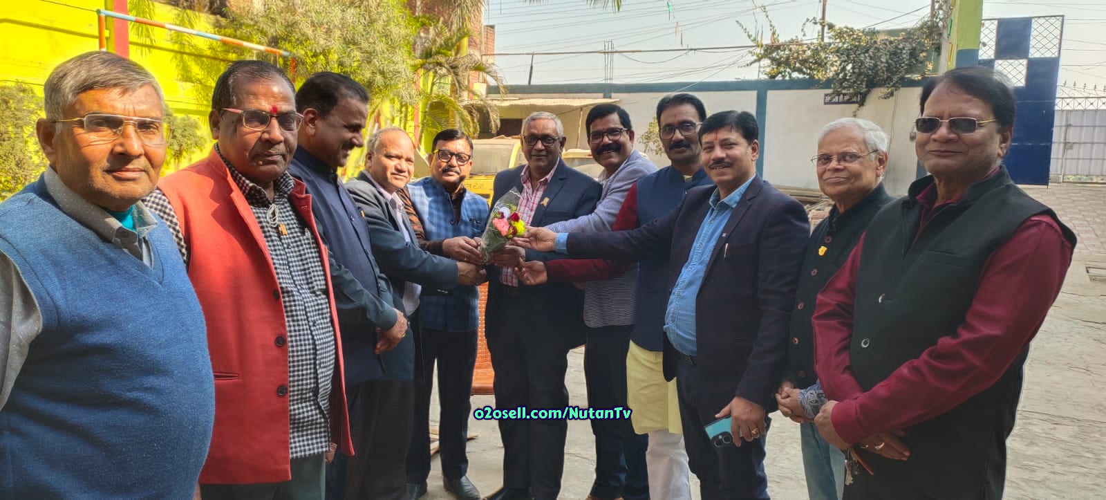 नवनिर्वाचित पदाधिकारियों को पुष्पगुच्छ देकर बधाई देते