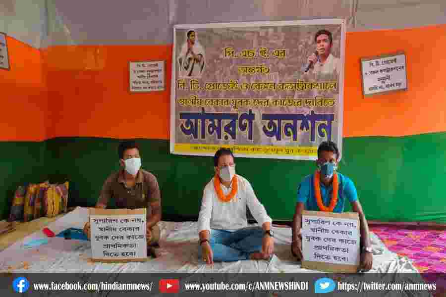 रोजगार को लेकर आमरण अनशन पर बैठे युवा तृणमूल राज्य महासचिव बिस्वजीत चटर्जी