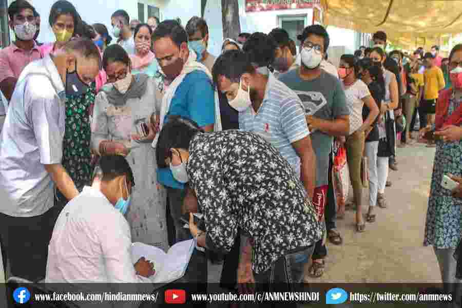 टीकाकरण कराने के लिए देर रात से लगी लोगों की लाइन
