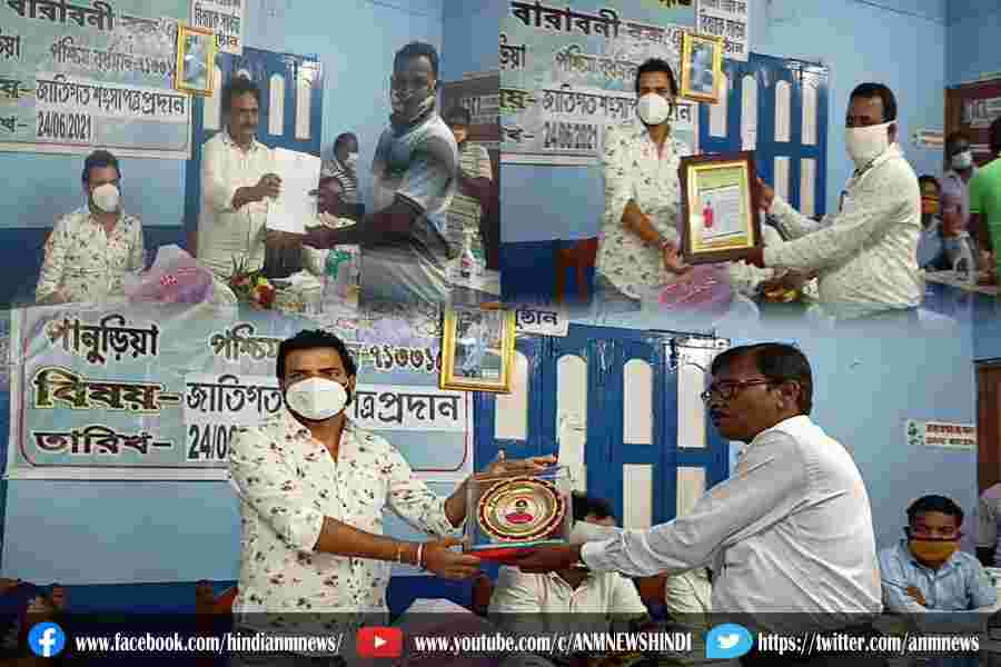 पानुरिया ग्राम पंचायत की ओर से बाराबनी विधायक विधान उपाध्याय को किया गया सम्मानित