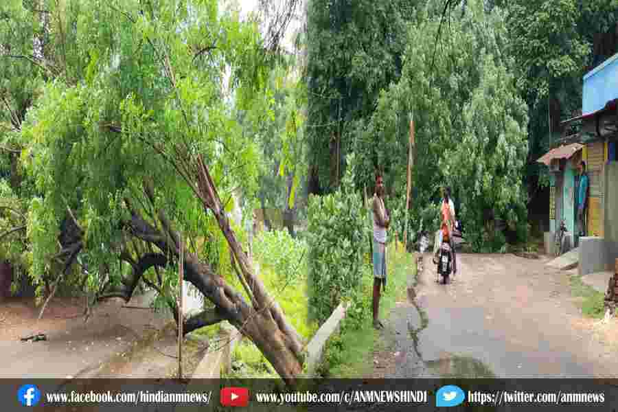 भारी बारिश से सड़क पर गिरा पेड़ यातायात बाधित