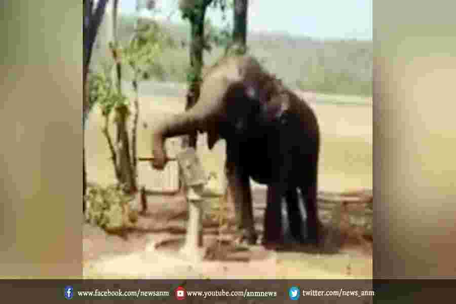 हाथी ने सूंड से हैंडपंप खींच ऐसे बुझाई प्यास, देखें वीडियो