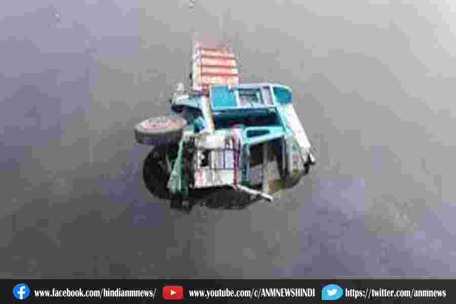 रेलिंग तोड़कर नदी में जा गिरी लॉरी