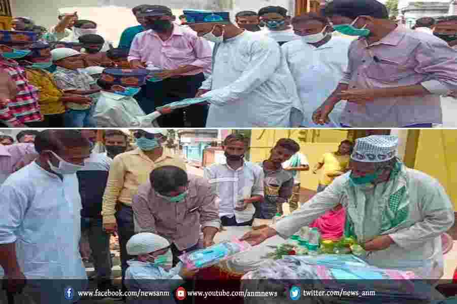 छोटे बच्चों के बीच कॉपी, कलम, पेन्सिल, सैनिटाईजर मास्क और चॉकलेट दिया गया