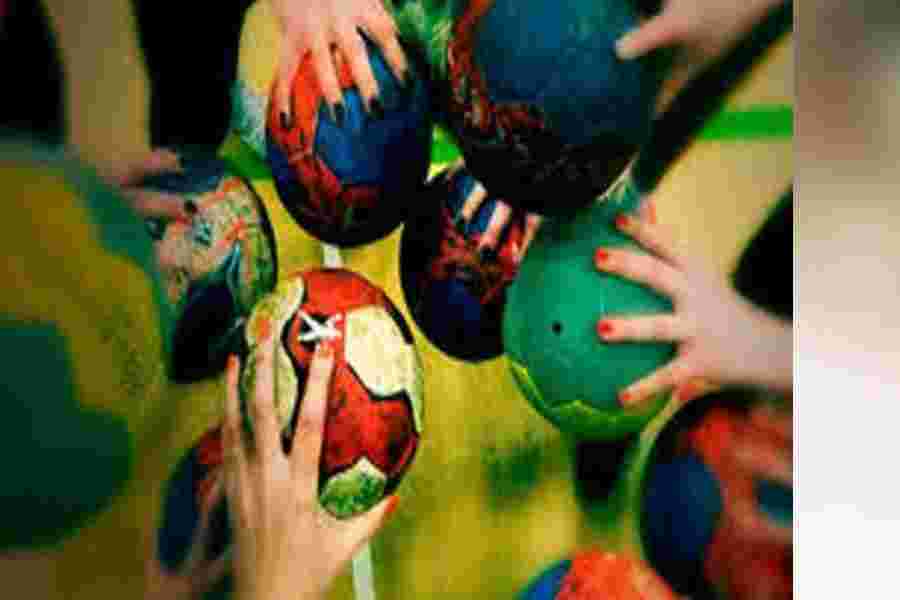 खतरनाक जगहों पर हैंडबॉल खेल रहे स्टूडेंट्स