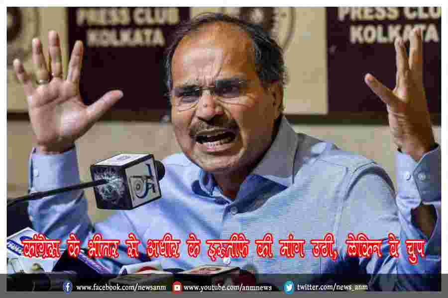 कांग्रेस के भीतर से अधीर के इस्तीफे की मांग उठी, लेकिन वे चुप