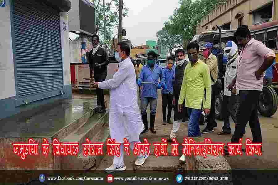 जमुड़िया के विधायक हरेराम सिंह ने अपने हाथों से सैनिटाईजेशन कार्य किया