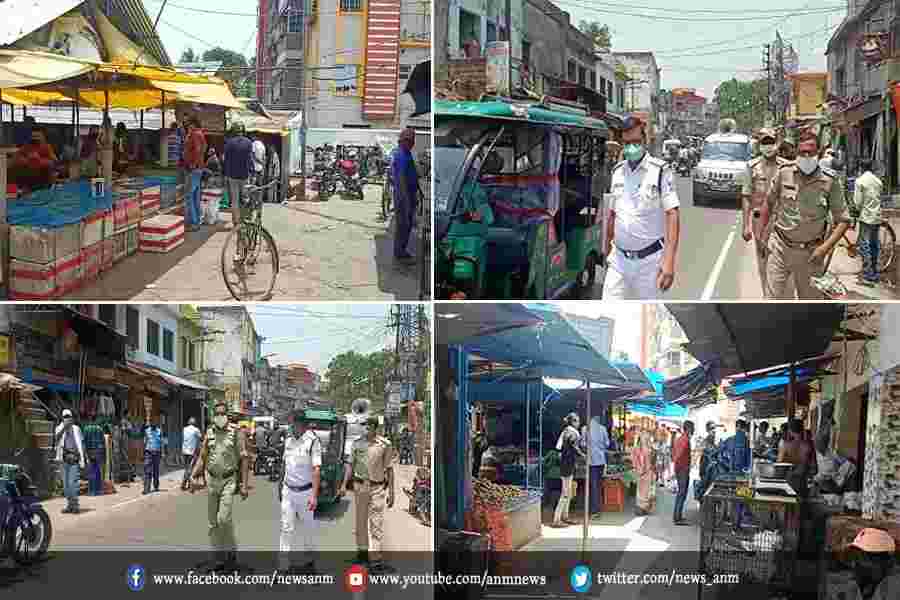राज्य के आंशिक लॉकडाउन के पहले दिन पुलिस ने क्षेत्र में जागरूकता अभियान चलाया