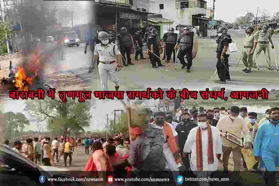बाराबनी में तृणमूल भाजपा समर्थको के बीच संघर्ष, आगजनी