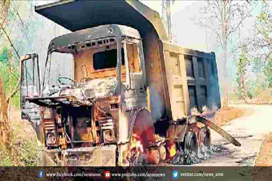 4 वाहनों को नक्सलियों ने आग लगा दी