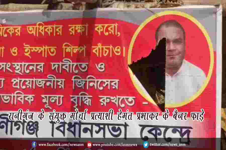 रानीगंज के संयुक्त मोर्चा प्रत्याशी हेमंत प्रभाकर के बैनर फाड़े