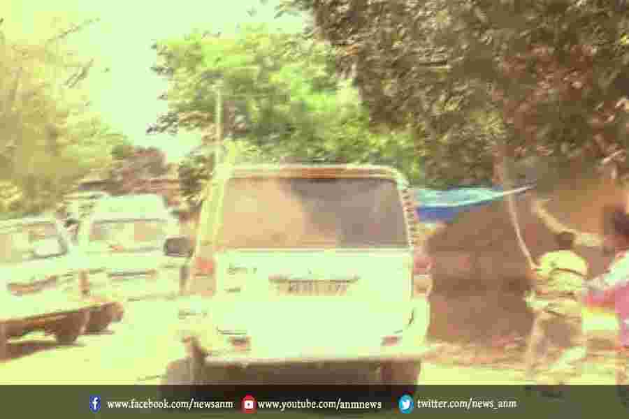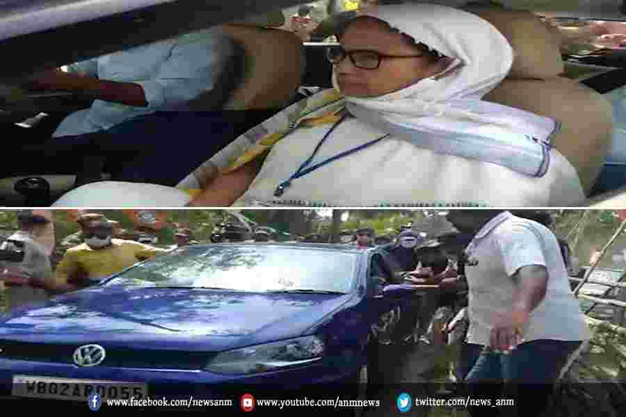 शुवेंदु की कार के आसपास प्रदर्शन