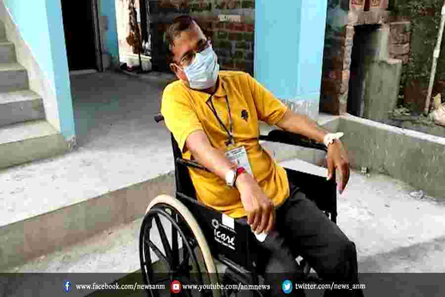 तमलुक के भाजपा प्रत्याशी व्हील चेयर पर अपना वोट डालने पहुंचे