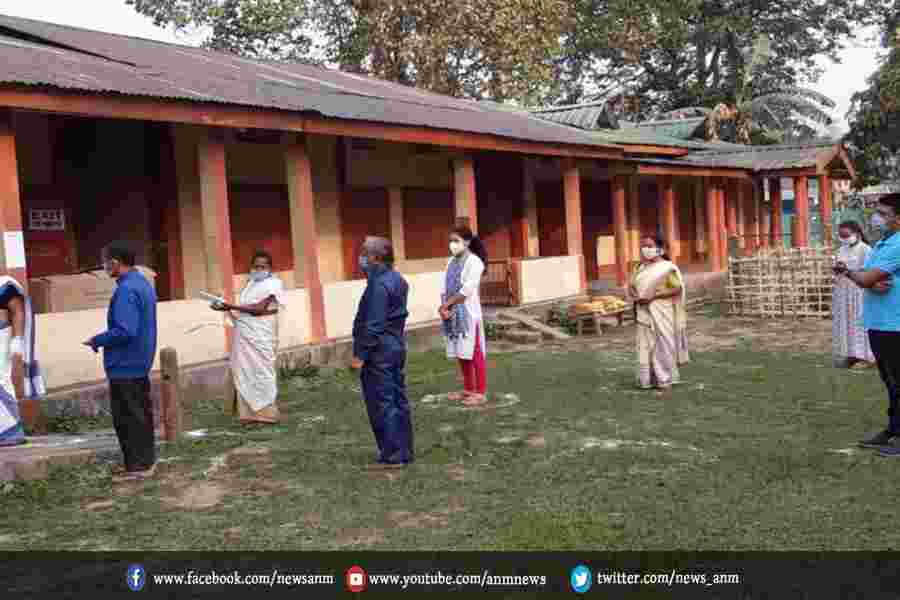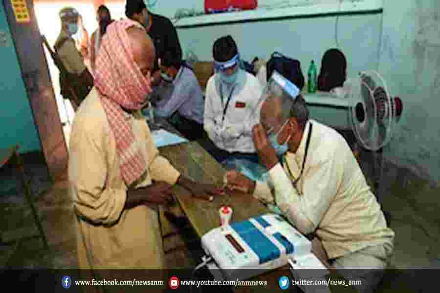कोरोना नियमों के अनुसार मतदान हो रहा है, देखें फोटो