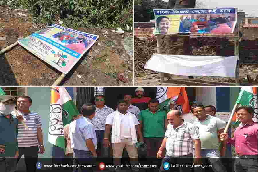 भाजपा पर तृणमूल के प्रचार बैनर फाड़ने का आरोप, बीडीओ कार्यलय का घेराव