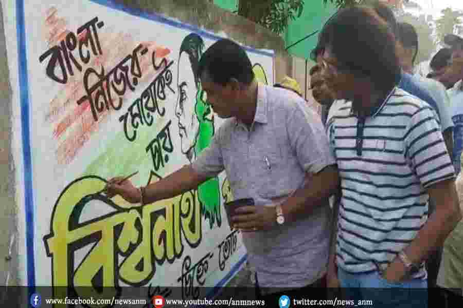 तृणमूल प्रत्याशी ने अपने हाथों से दीवार लेखन कर शुरू किया प्रचार अभियान