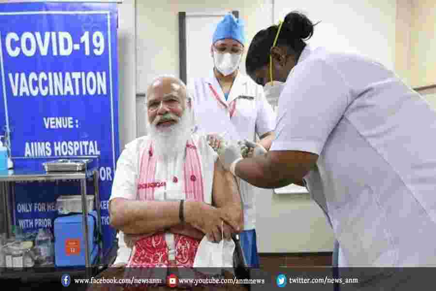 प्रधानमंत्री नरेंद्र मोदी ने एम्स में कोरोना वैक्सीन की पहली खुराक ली