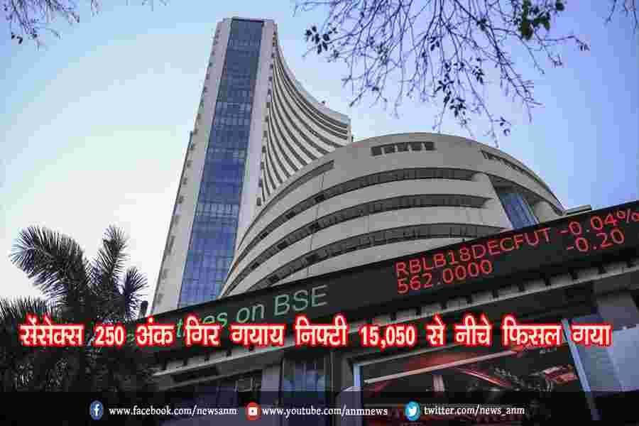 सेंसेक्स 250 अंक गिर गया; निफ्टी 15,050 से नीचे फिसल गया
