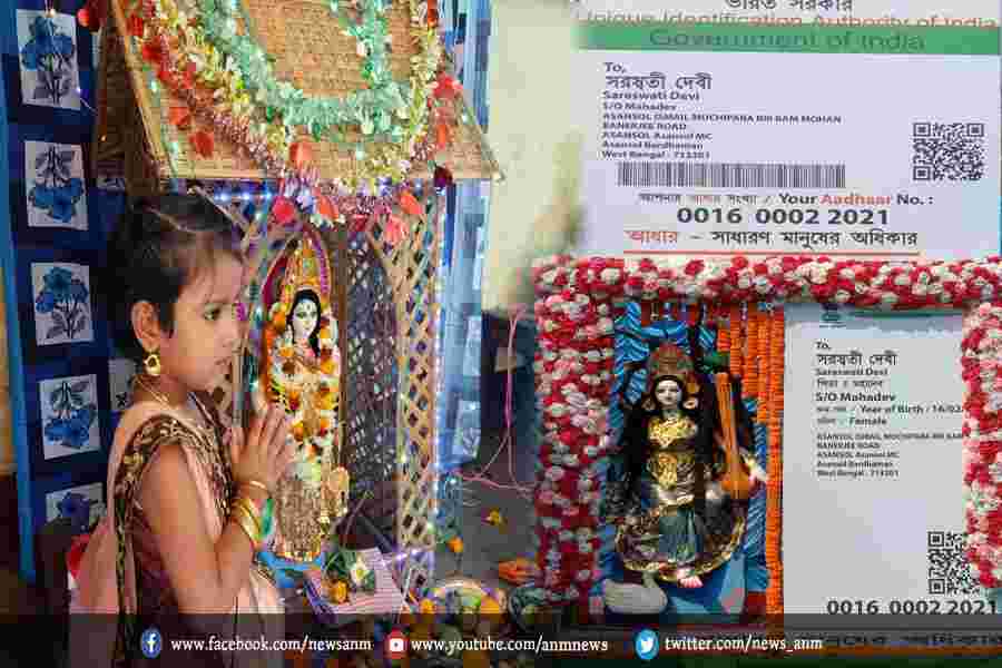 शिल्पांचल में उत्साह के साथ मना सरस्वती पूजा, दिखा माँ का आधार कार्ड