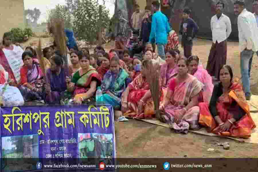 गांव वासियों काम बंद करा कर धरने पर बैठे