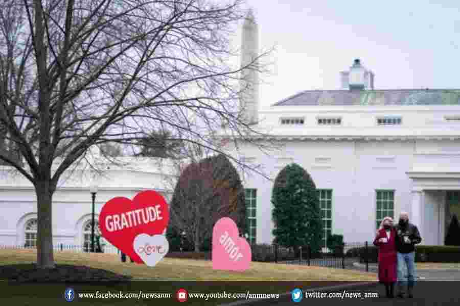 व्हाइट हाउस के लॉन में बिडेन ने की वेलेंटाइन दिवस की सजावट
