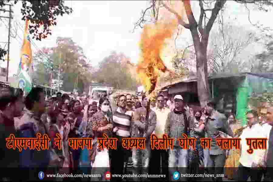 टीएमवाईसी ने भाजपा प्रदेश अध्यक्ष दिलीप घोष का जलाया पुतला