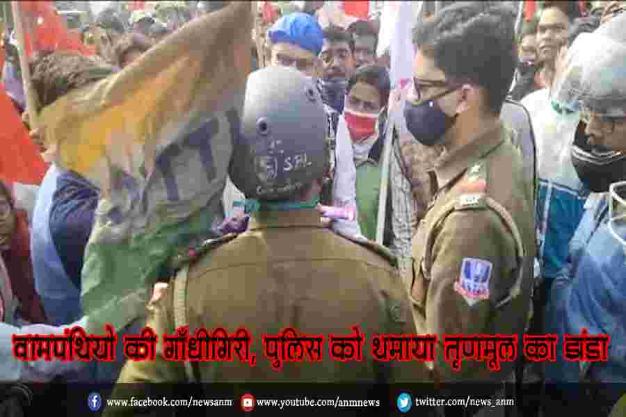 वामपंथियो की गाँधीगिरी, पुलिस को थमाया तृणमूल का झंडा