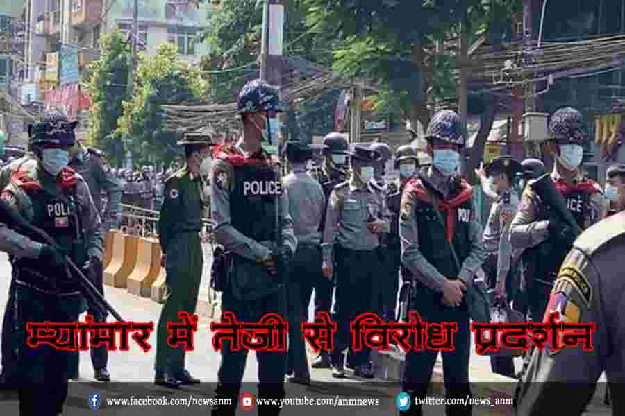 म्यांमार में तेज़ी से विरोध प्रदर्शन