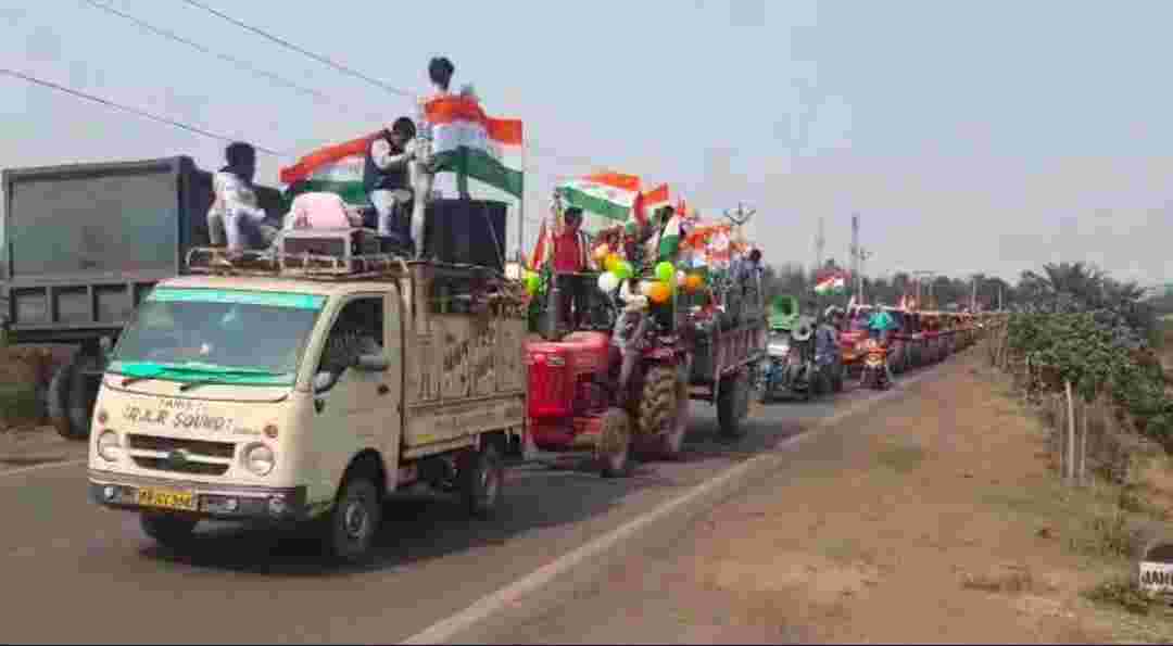 तृणमूल कांग्रेस ने किया चक्का जाम, निकाली ट्रैक्टर रैली