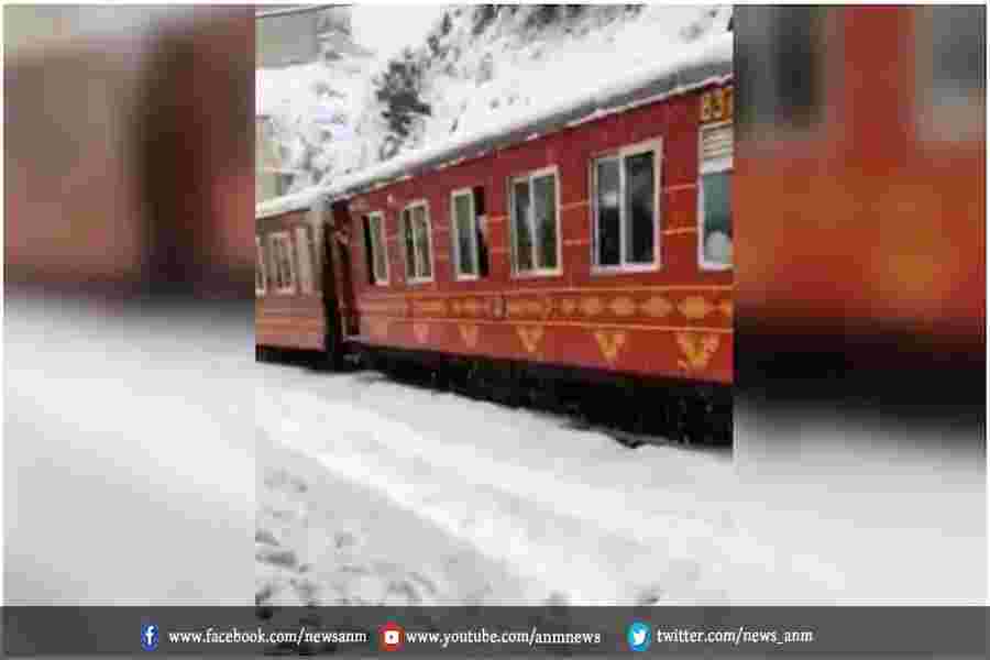 हिमाचल प्रदेश में बर्फ से ढके स्टेशन पर ट्रेन, वायरल वीडियो