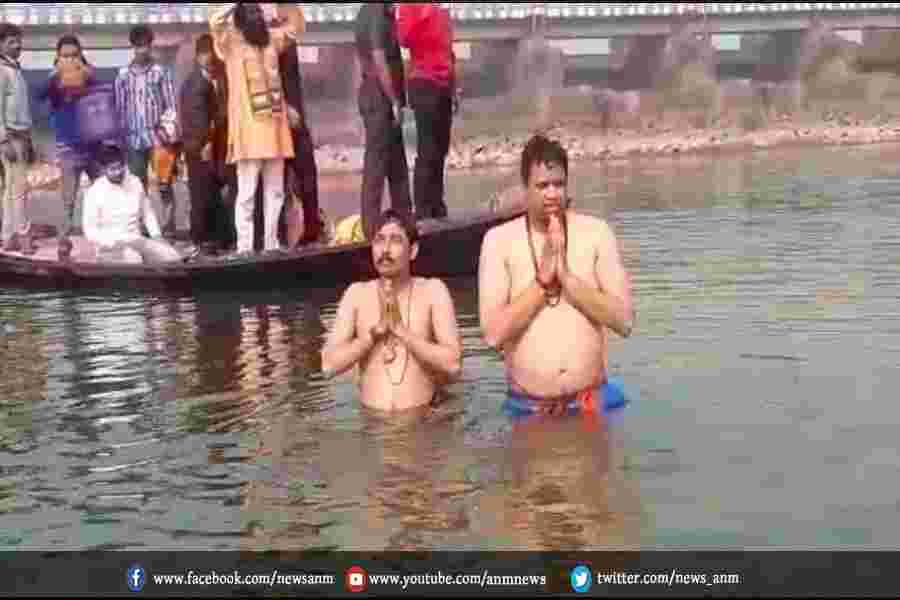 मगर संक्रांति के शुभ अवसर पर भाजपा सांसद सौमित्र खान ने दामोदर नदी मे लगाई डुबकी