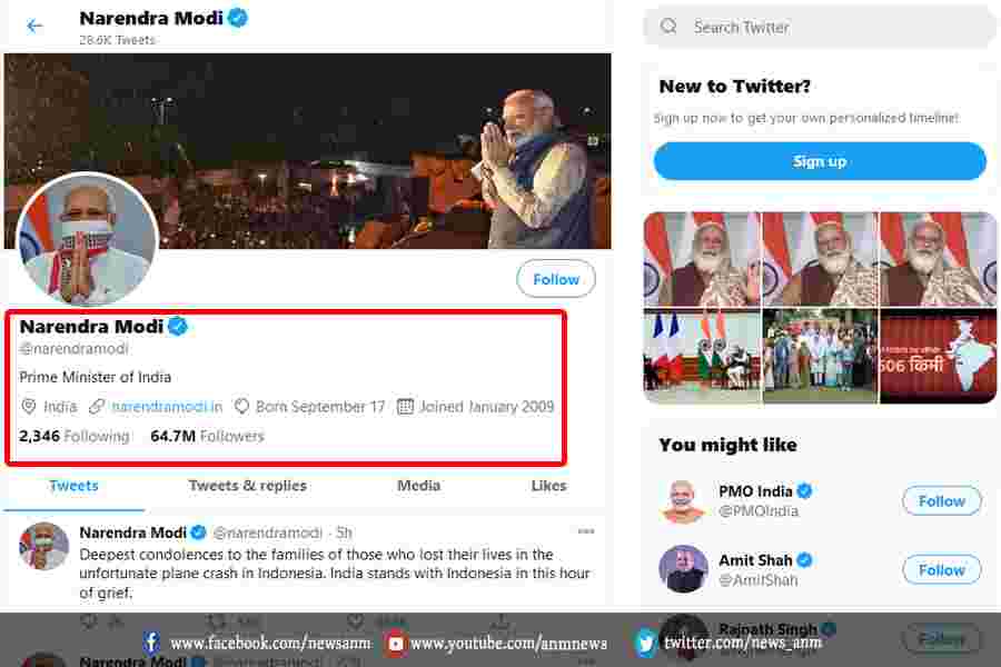प्रधानमंत्री नरेंद्र मोदी को ट्विटर पर सबसे ज्यादा फॉलो किया जा रहा है