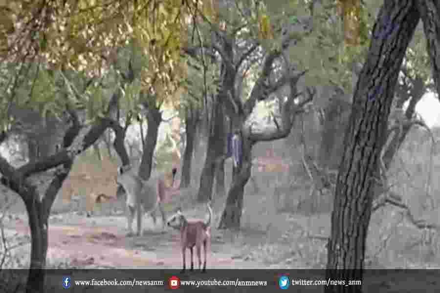 कुत्तों के डर से शेर दौड़ते हैं, देखे वीडियो