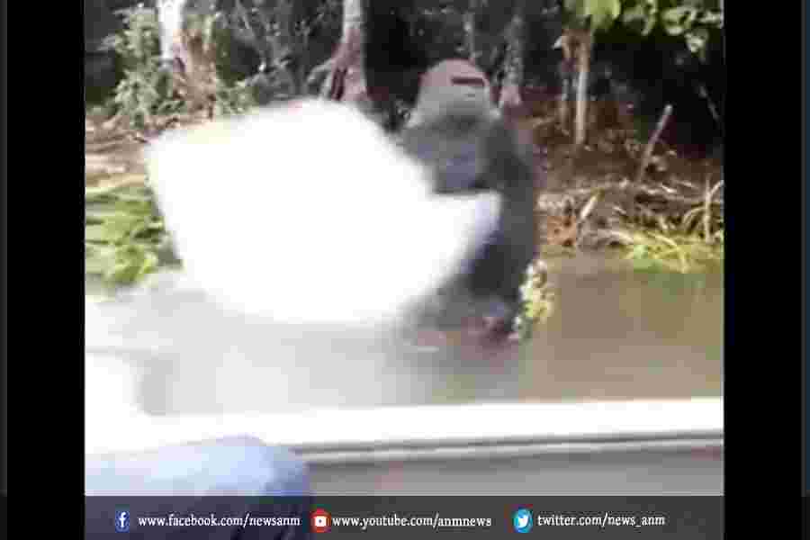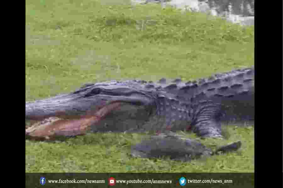 मगरमच्छ के जबड़े में फंसा भाग्यशाली कछुआ