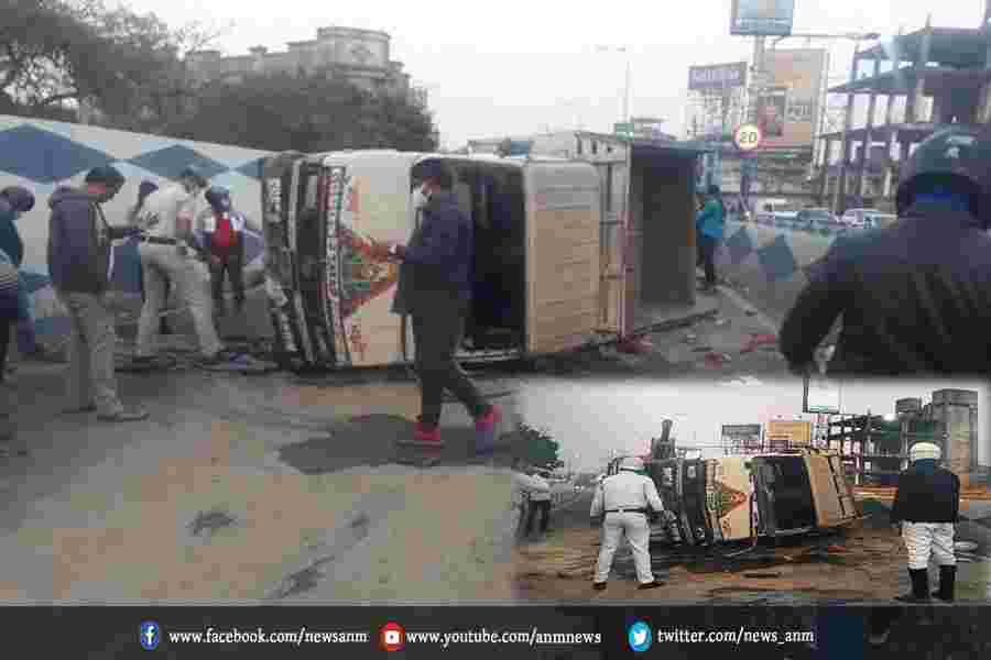 फ्लाईओवर पर वाहन पलटी, कई घायल