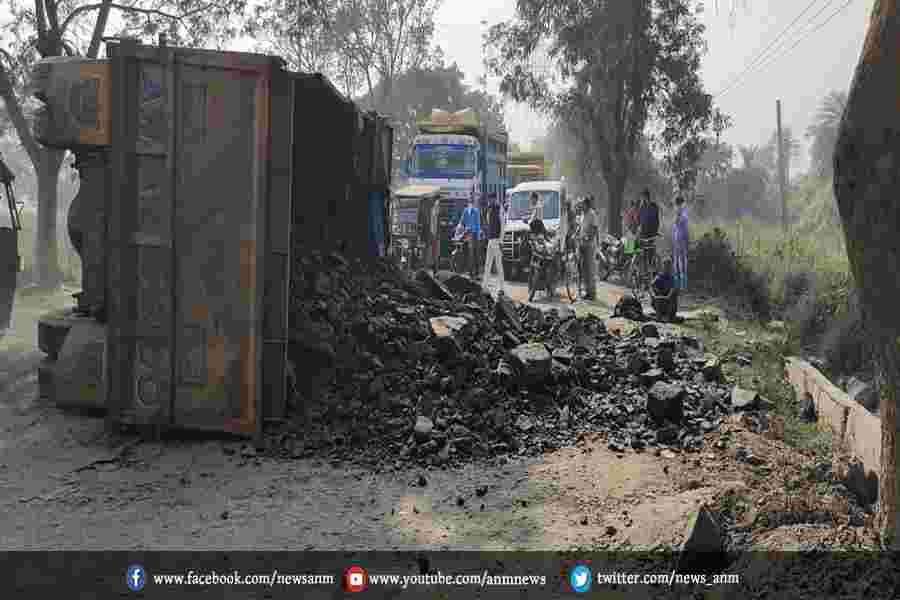 बड़ा हादसा टला, कोयले से लदा डंपर पलटी