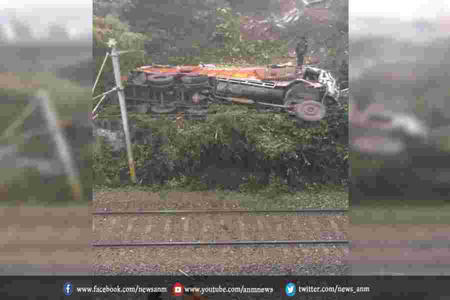 हाईवे से ट्रक रेल पटरी के पास गिरा ट्रक, भयानक हादसा