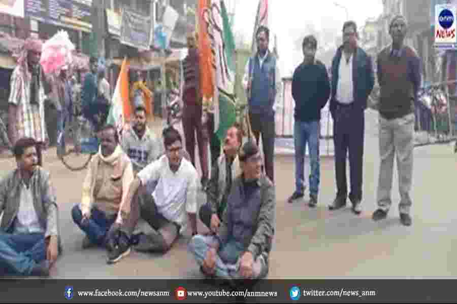 कांग्रेस के समर्थकों ने रास्ते को किया ब्लॉक