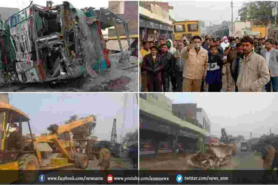बालू लदा एक ट्रक वाहन पर पलटा, 8 की मौत