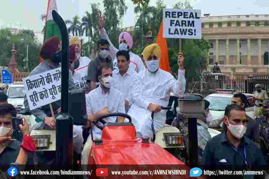 ट्रैक्टर लेकर संसद पहुंचे राहुल गांधी