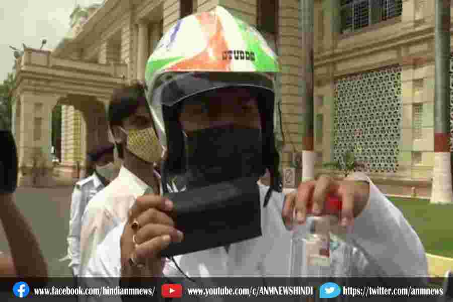 हेलमेट पहनकर विधानसभा में पहुंचे राजद विधायक
