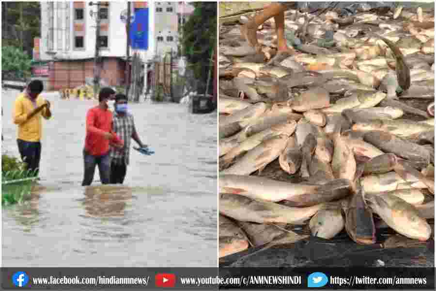 शहर के सड़कों से लोग ने पकड़ी मछलियां
