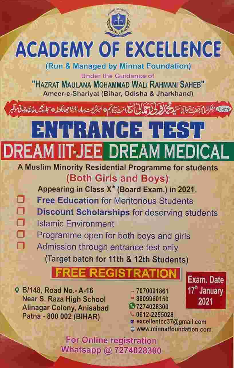 Academy of Excellence ने जारी की एंट्रेंस टेस्ट की तिथि